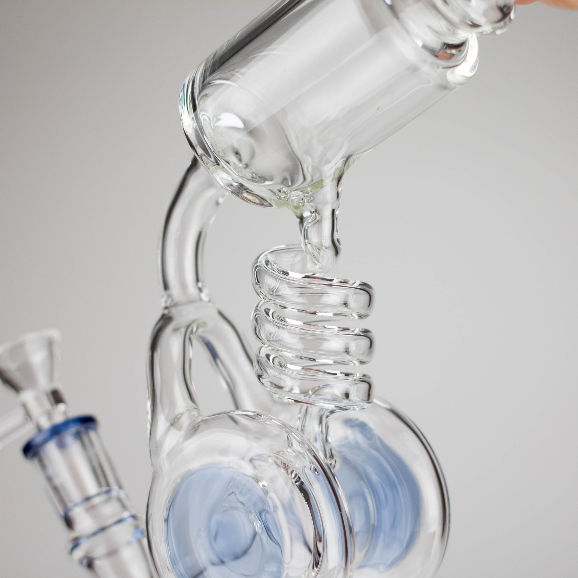 13" Telescope Coil Button Recycler Bong – Blue Glass | Inline Perc | 14mm Bowl Joint