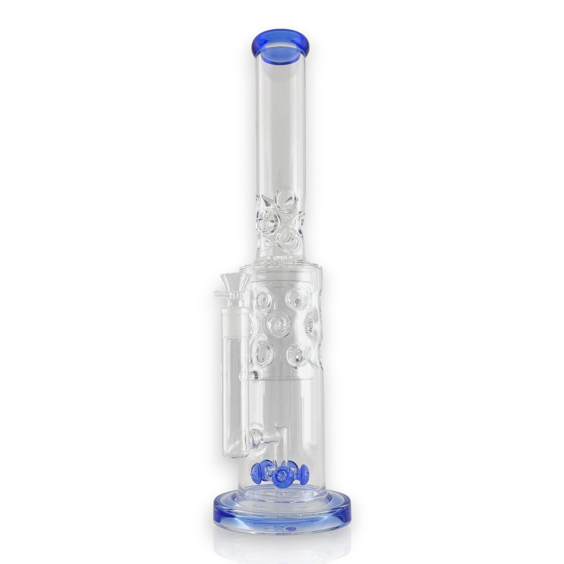 This 16-inch straight shooter water pipe combines durability, advanced filtration, and easy maintenance in a clean, functional design. Made from thick borosilicate glass, the straight-tube body is reinforced with precision-drilled centre holes that create additional percolation as smoke rises.