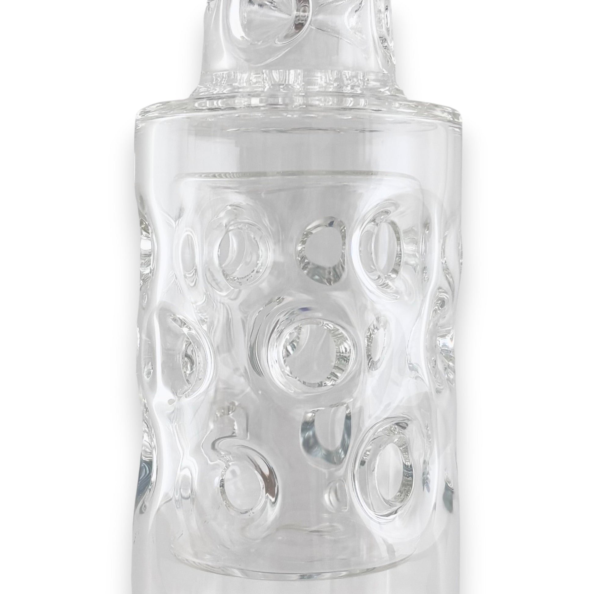 The triple-pinch ice catcher in the neck provides extra cooling when stacked with ice cubes, while the 19mm male glass bowl fits snugly into the 19mm female joint, ensuring compatibility with other glass accessories. This straight shooter balances functionality and practicality, making it a dependable piece for consistent performance.