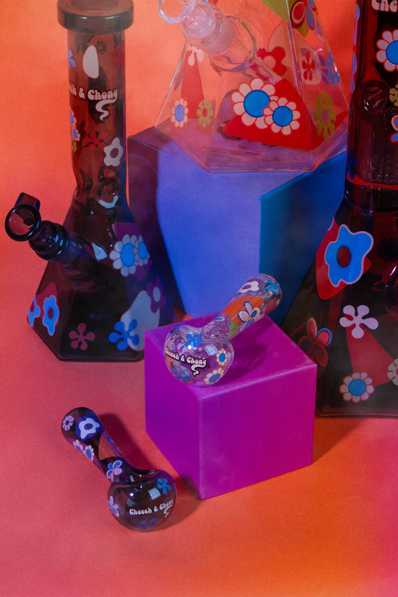 Hey man, are you ready to get groovy with your ganja? The Power to the Flower Spoon Hand Pipe features a classic '70s Cheech & Chong® Glass decal and a mouthpiece designed to catch your ash while you smoke your grass. Stay funky fresh and choose between crystal Clear or hazy Smoke for your next sesh.