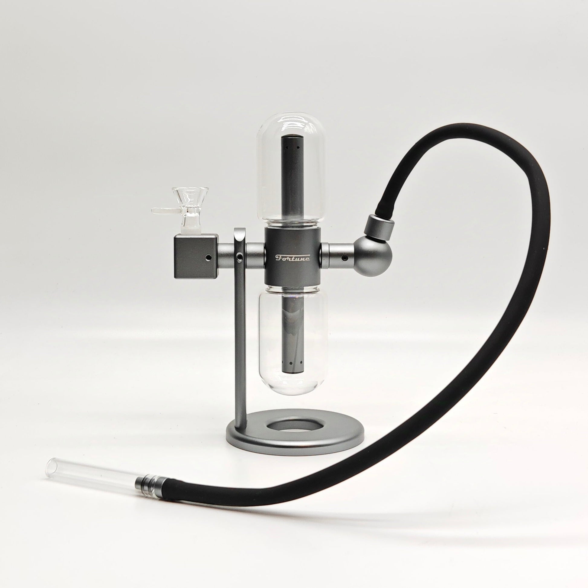 Fortune is honored to introduce the Gravity Infuser, a sophisticated and elegantly designed 360° rotating glass infuser that generates kinetic motion activation via cascading water displacement, opposing airflow technology and the natural force of gravity. Constructed using the highest quality materials, including borosilicate glass globes and aircraft-grade anodized aluminum, Fortune Gravity Infuser elicits an immersive experience while delivering smooth, consistent and vaporous draws.