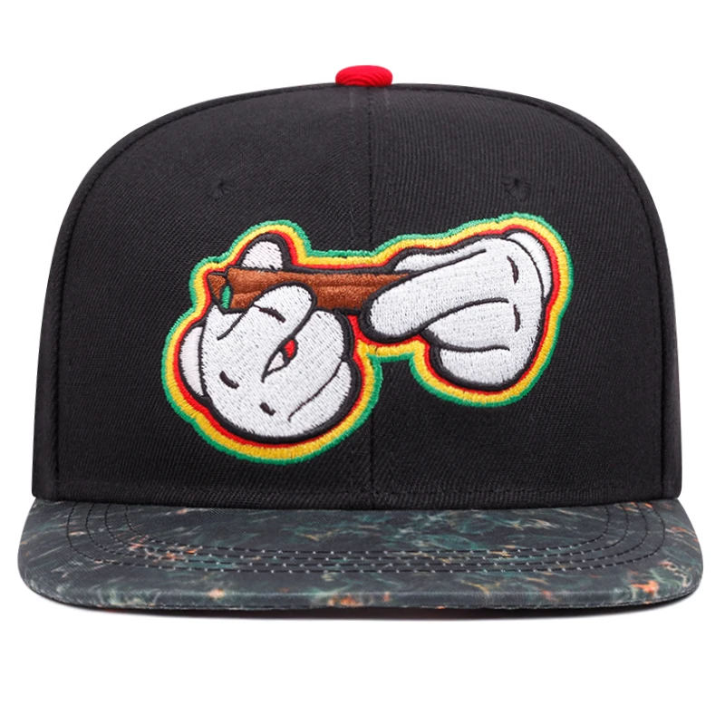 New Two Handed Cigarettes Embroidery Snapback Cap Hot Sale Unisex Fashion Adjustable Baseball Cap Women Flat Brimmed Hat