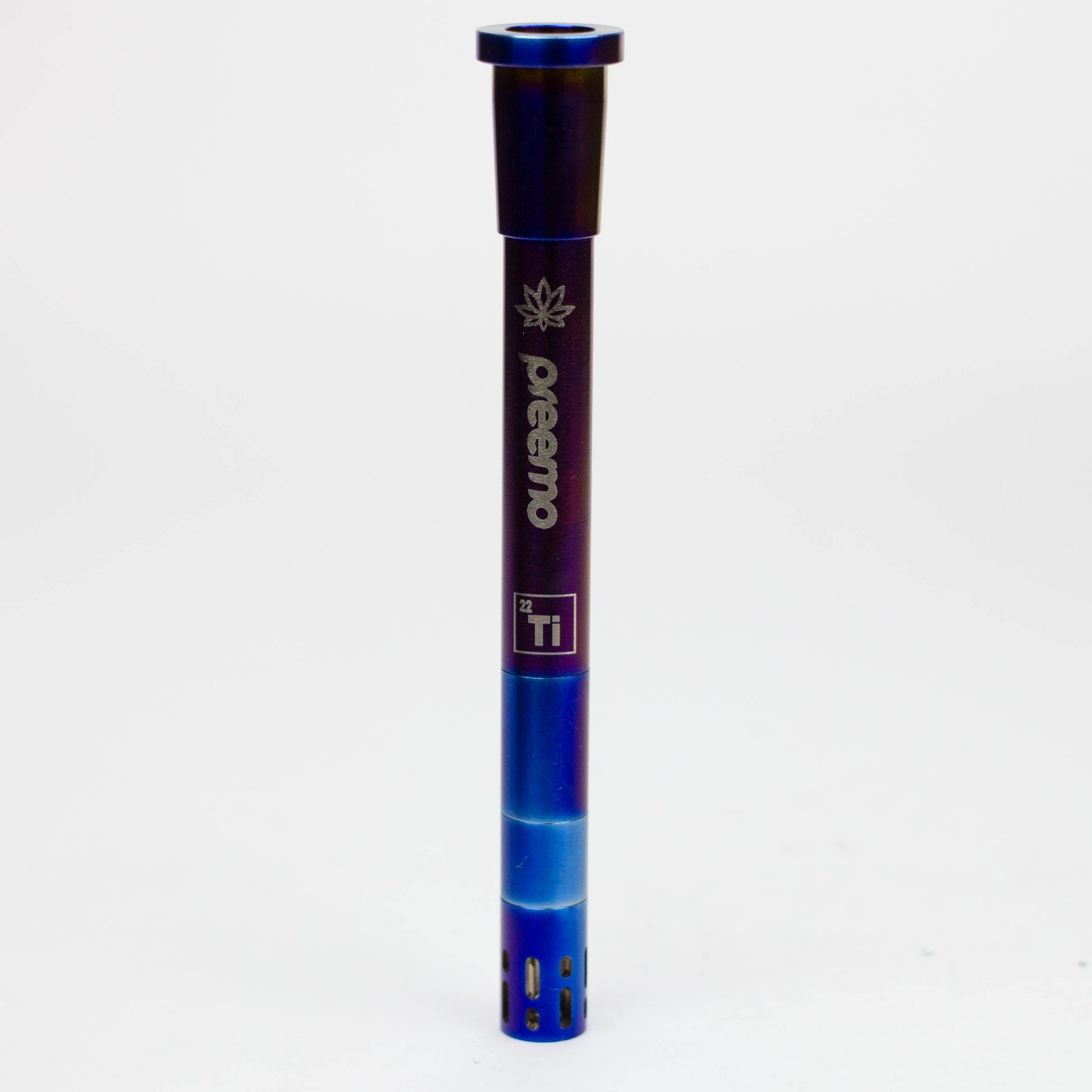 This Preemo universal titanium stem is a great addition that will work with most bongs. The convertible lengths are measured from the stem section down (excluding the joint section). The tip is designed with multiple cuts to create an even greater aeration compared to most stems in the market. A great backup or replacement for your broken glass stem.The rainbow color option is anodized titanium created with an electrolytic finishing process